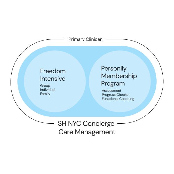 Personily is designed as a wrap-around model to provide services in partnership with a trusted primary clinician in our network; clients without a primary clinician will be referred to one in our practice or a trusted external partner.
